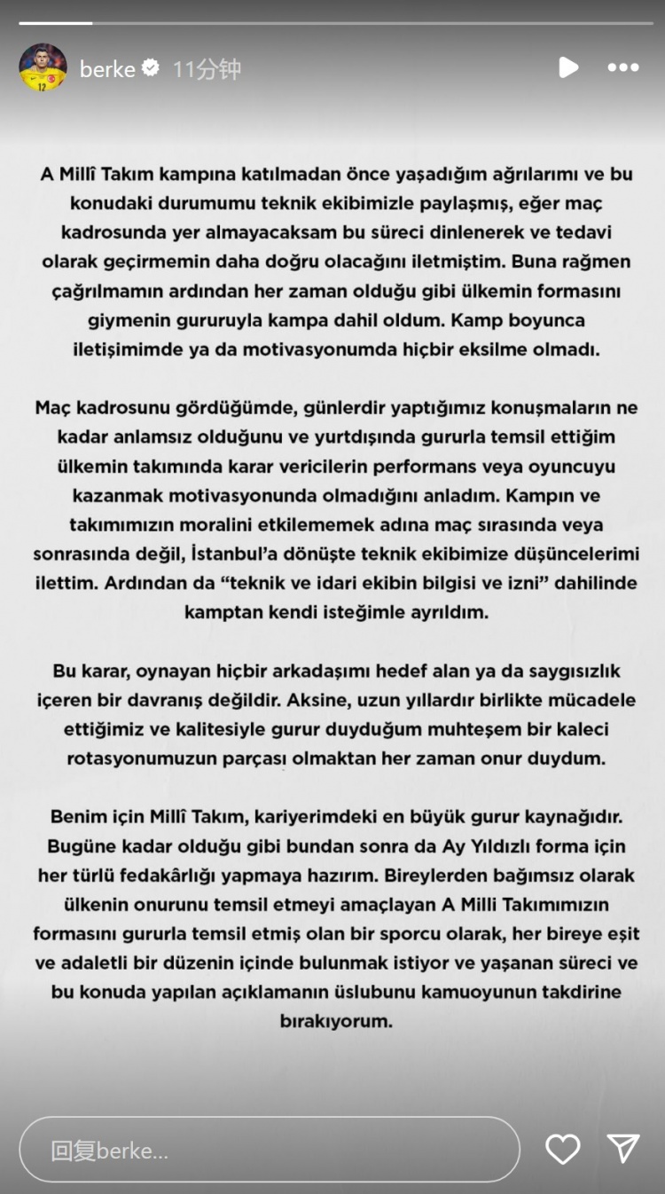 Khi xem danh sách trận đấu, tôi nhận ra rằng việc giao tiếp ngày nay thật vô nghĩa - phong độ và tinh thần chiến đấu của những cầu thủ đã giành được vinh quang cho đất nước ở nước ngoài hoàn toàn không được coi trọng trong mắt những người ra quyết định của đội tuyển quốc gia. Để tránh ảnh hưởng đến trại huấn luyện và tinh thần toàn đội, tôi chọn truyền đạt suy nghĩ của mình cho đội kỹ thuật sau khi trở về Istanbul, thay vì trong hoặc sau trận đấu. Với được sự đồng ý của ban quản lý, tôi tự nguyện rời trại huấn luyện.